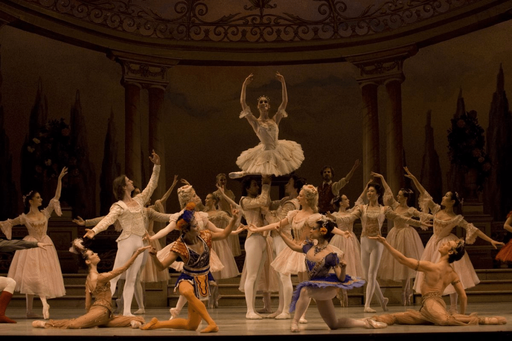 Subsequently, in the court of Louis XIV, ballet flourished. With the French king being a great patron of the arts and a trained ballet dancer himself, he awarded nobility success in politics based on their proficiency in dance, fencing, etiquette, and the fine arts. His love for dance inspired the inauguration of the Académie Royale de Musique et Danse. Originally an art form seldom performed by women, Danse d’école ushered in a new era where women were finally allowed to train in ballet (previously only participating in court social dances). By institutionalizing ballet, he positioned his empire as the arbiter of elegance and taste in Europe, with ballet terminology in the French language. This developed a cohesive French identity revolving around refinement and spectacle, consolidating Louis XIV’s absolutist ideology.